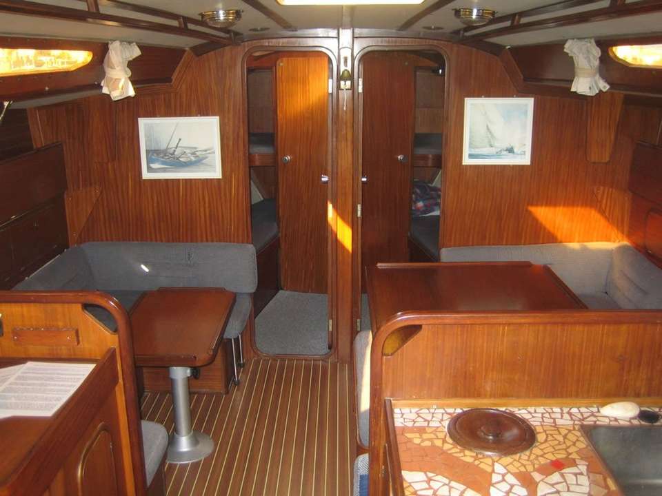 Este velero puede alojar hasta 6 personas con sus 4 camarotes dobles (2 camarotes con camas dobles y 2 camarotes con camas individuales en litera)*. Tendrás acceso a un baño y 2 aseos para compartir con todos los pasajeros.