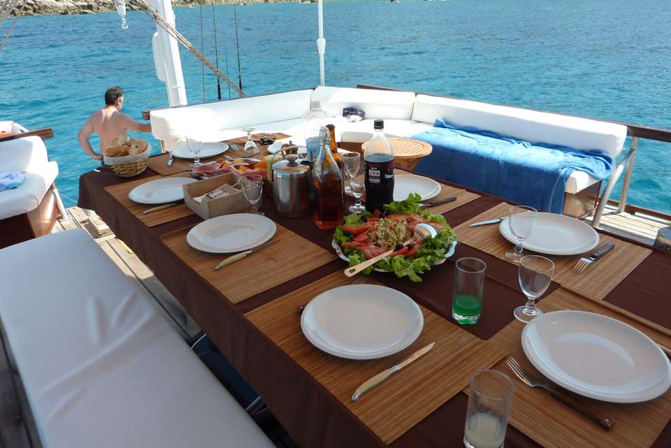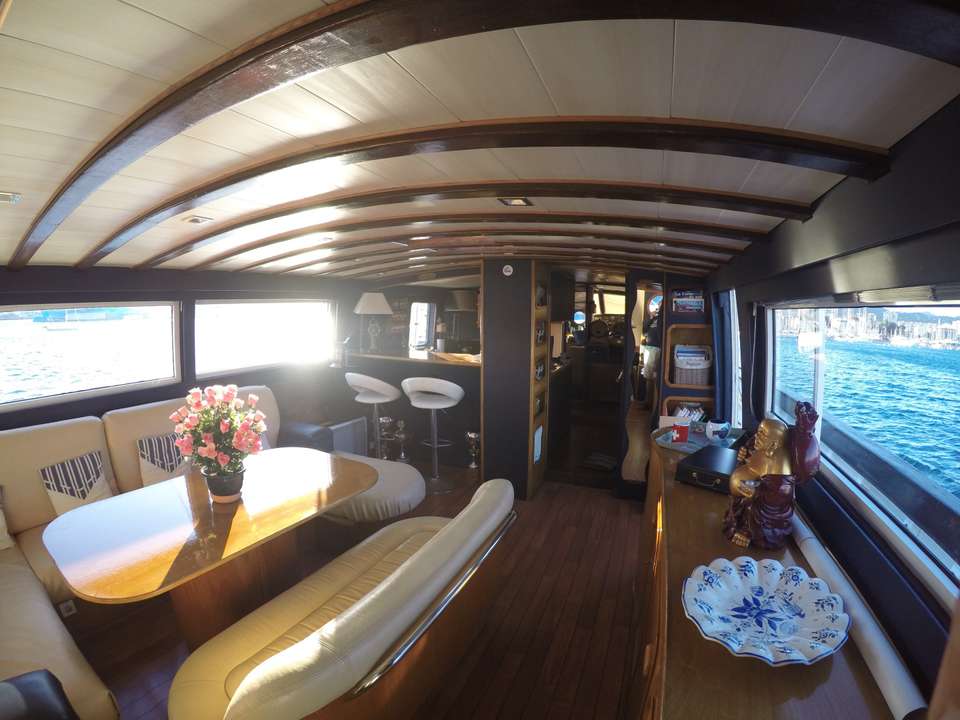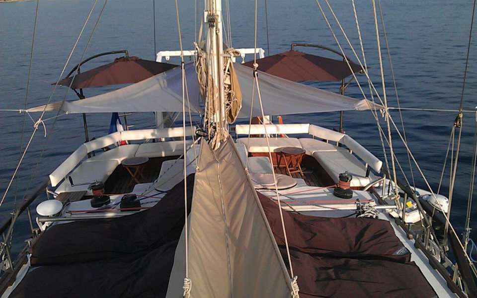 El Santa Giulia es un ketch de madera maciza de roble construido en 1973 y renovado en 2009 para convertirlo en una verdadera casa flotante. Un barco ideal para un crucero en Córcega donde se puede combinar el placer de navegar y comodidad. La cubierta trasera de 35m2 permite disfrutar plenamente del crucero por las aguas del Mediterráneo.